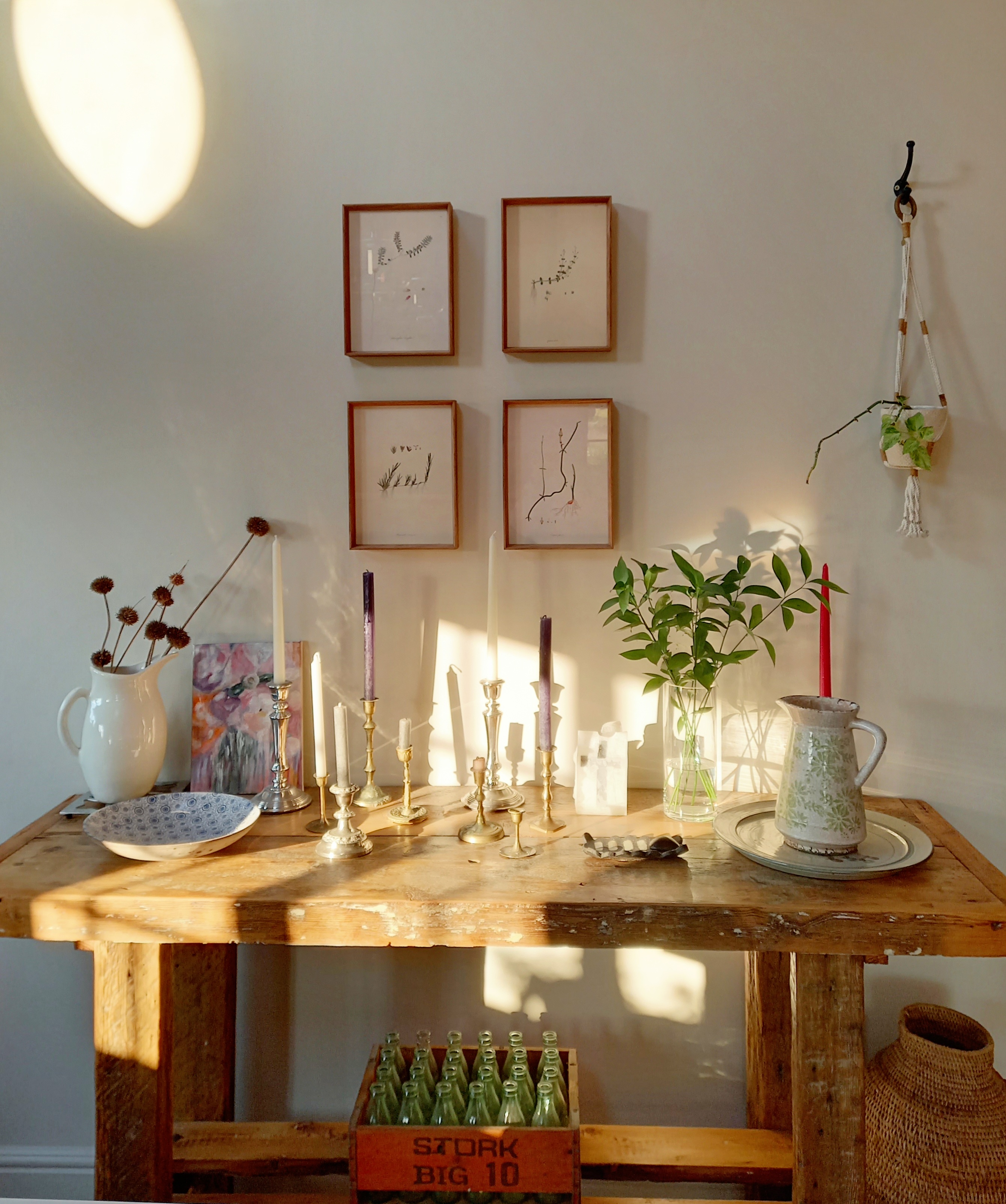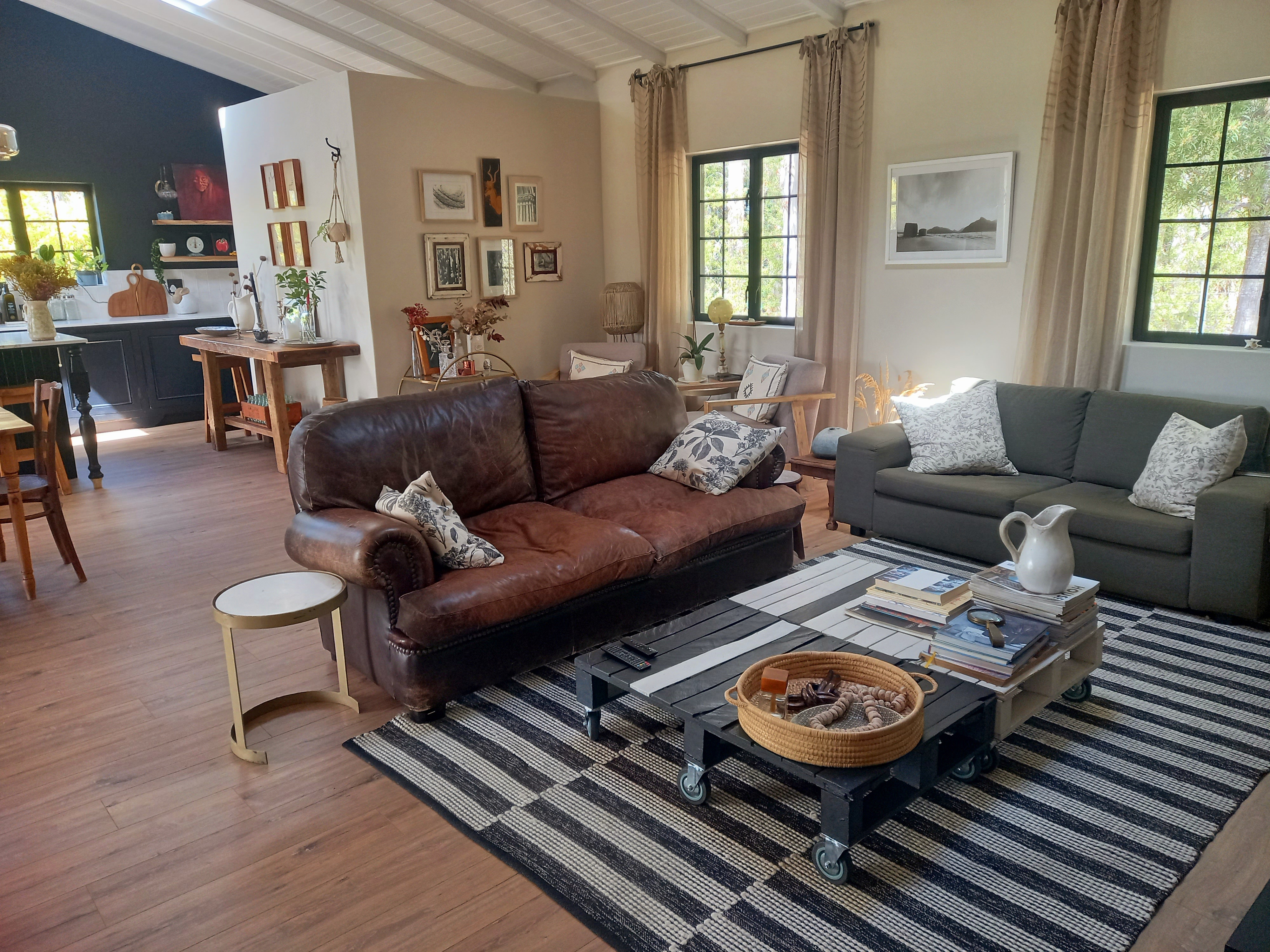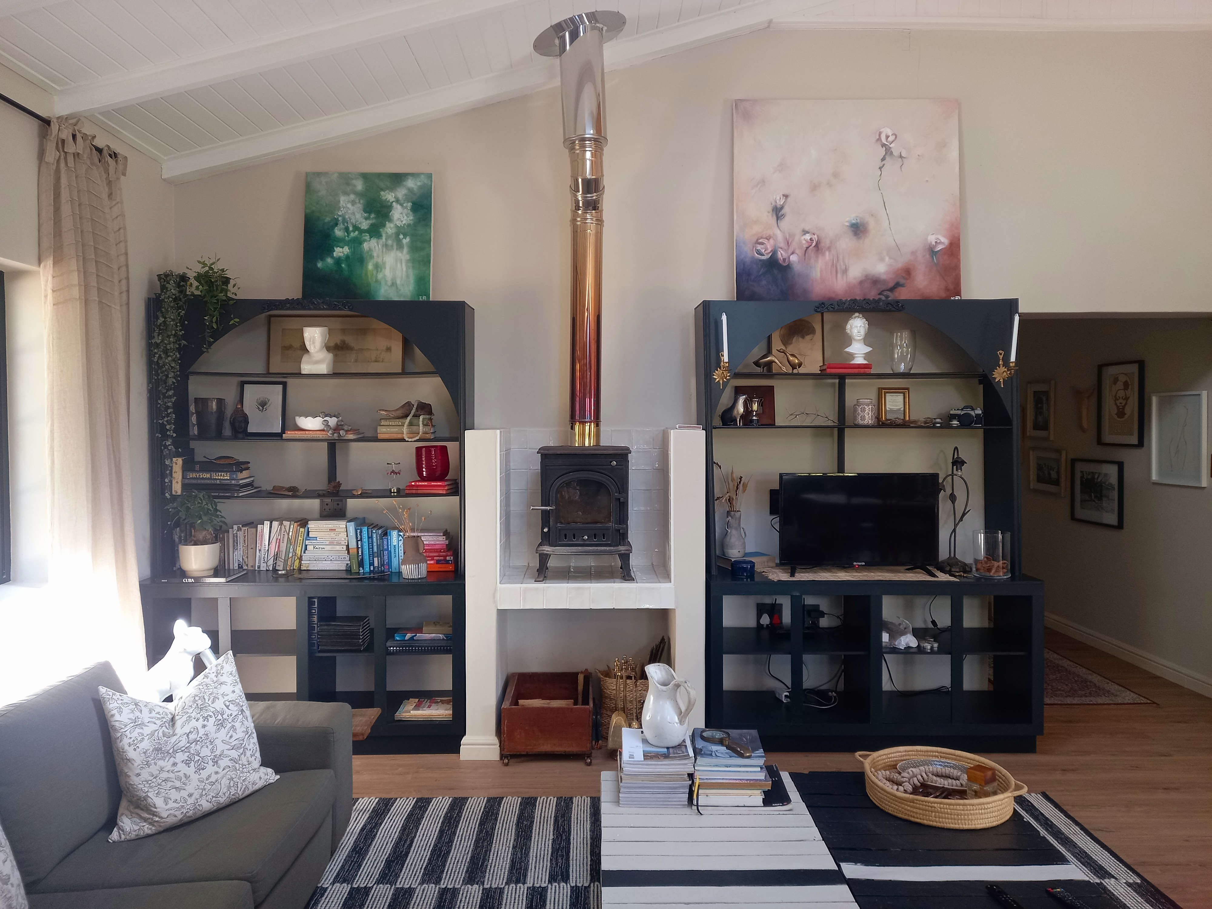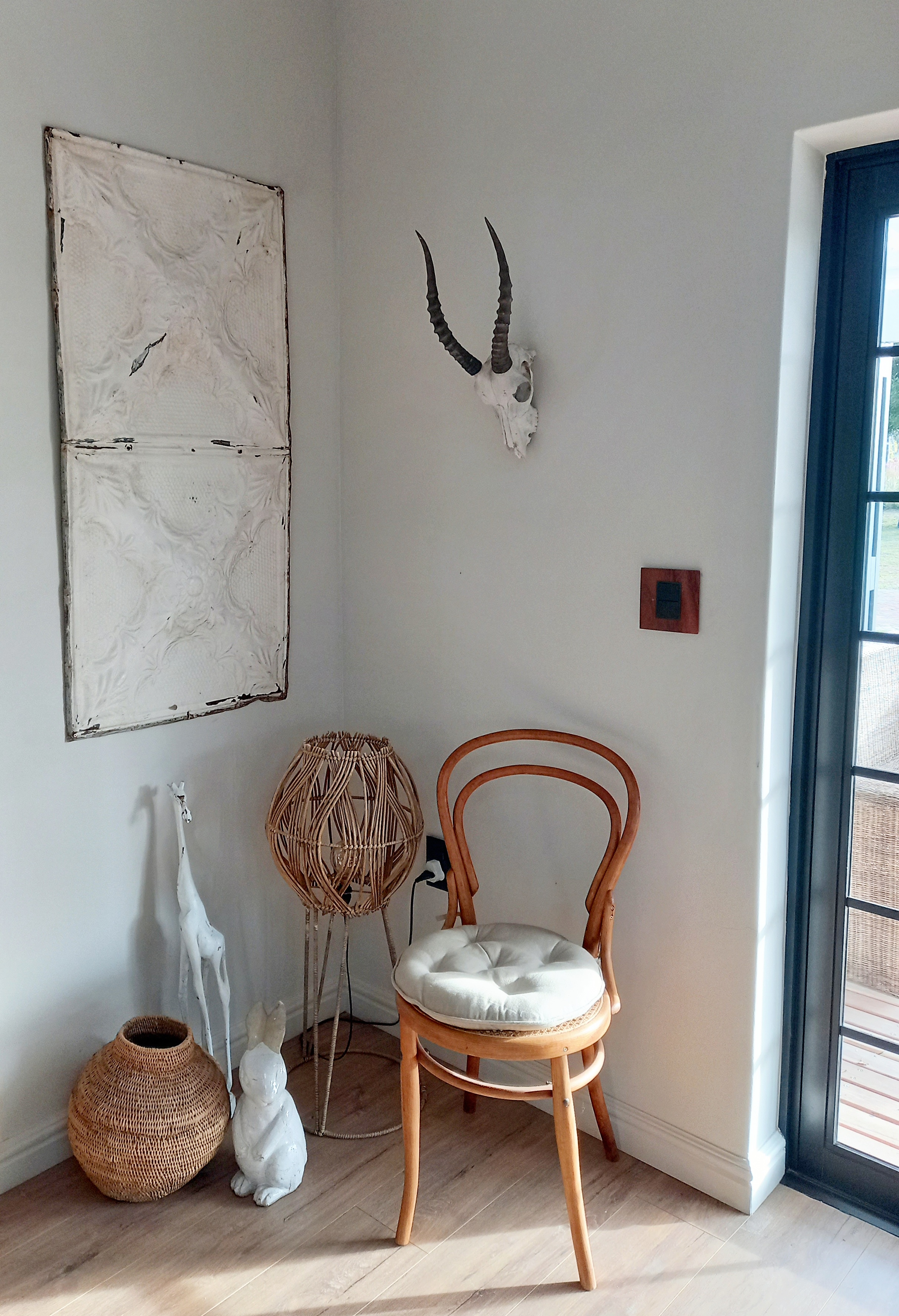 The kitchen and lounge needed a refresh. So using colour, I injected new life into the two areas by painting the kitchen cabinets a soft green, allowing the inside to come in, and adding paint to the wall in the lounge to anchor the space.